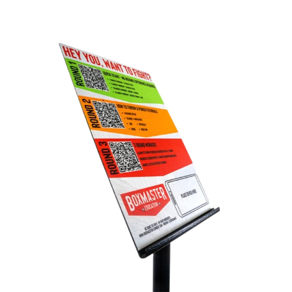 This unique product has been designed to make the whole boxing experience easy and fun for beginners and also provide dynamic workouts for the more experienced. There are 3 QR Codes for varying experiences giving you options when working out.
