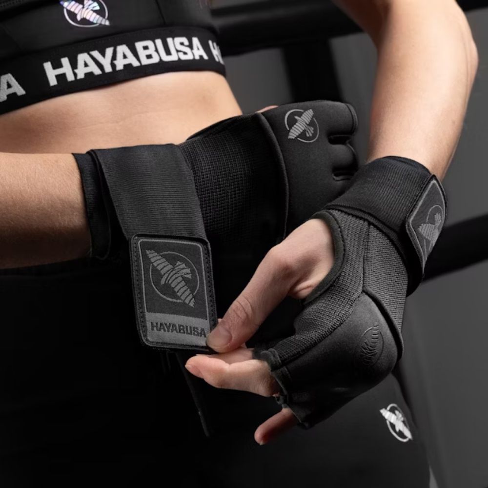 Hayabusa's Deluxe Quick Hand Wraps streamline your training prep with an effortless slip-on design for quick and secure support. The low-profile foam padding absorbs impacts to protect your knuckles, while staggered-length, knuckle-aligned fingers ensure a natural, flexible fit that moves with you. Reinforced with over-lock stitching for added durability, these wraps are perfect for anyone looking for a convenient alternative to traditional hand wraps.